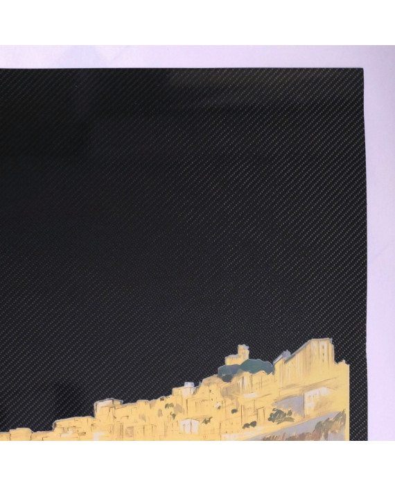 Opera ispirata al manifesto "Grand Prix Monaco 1935" di Geo Ham (Georges Hamel) del 1935. Realizzata dallo studio di design Della Rosa. Prima edizione 2026. Stampa digitale su lastra in fibra di carbonio tagliata a mano. Dimensioni: 70x100 cm circa. Al retro cornice metallica per l'affissione e targhetta con numero di matricola inciso a mano. Esemplare numero: A2-A01 Opera artistica realizzata artigianalmente, che sicuramente presenta anche delle imperfezioni come leggere curvature, graffi sulla superficie e bordi non perfettamente dritti. Spedizione in Italia gratuita.